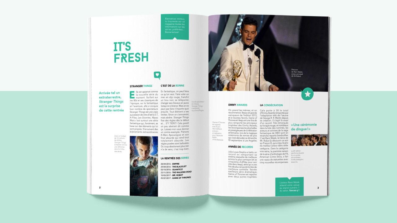 Le magazine à pour but d'informer les lecteurs sur les stands à retrouver, mais également à donner des détails sur les séries en questions, des anecdotes avec les acteurs ou même de parler des making of. Le tout en restant le plus clair possible avec des niveaux de lectures cohérents et des gimmicks rappelant la pop-culture.