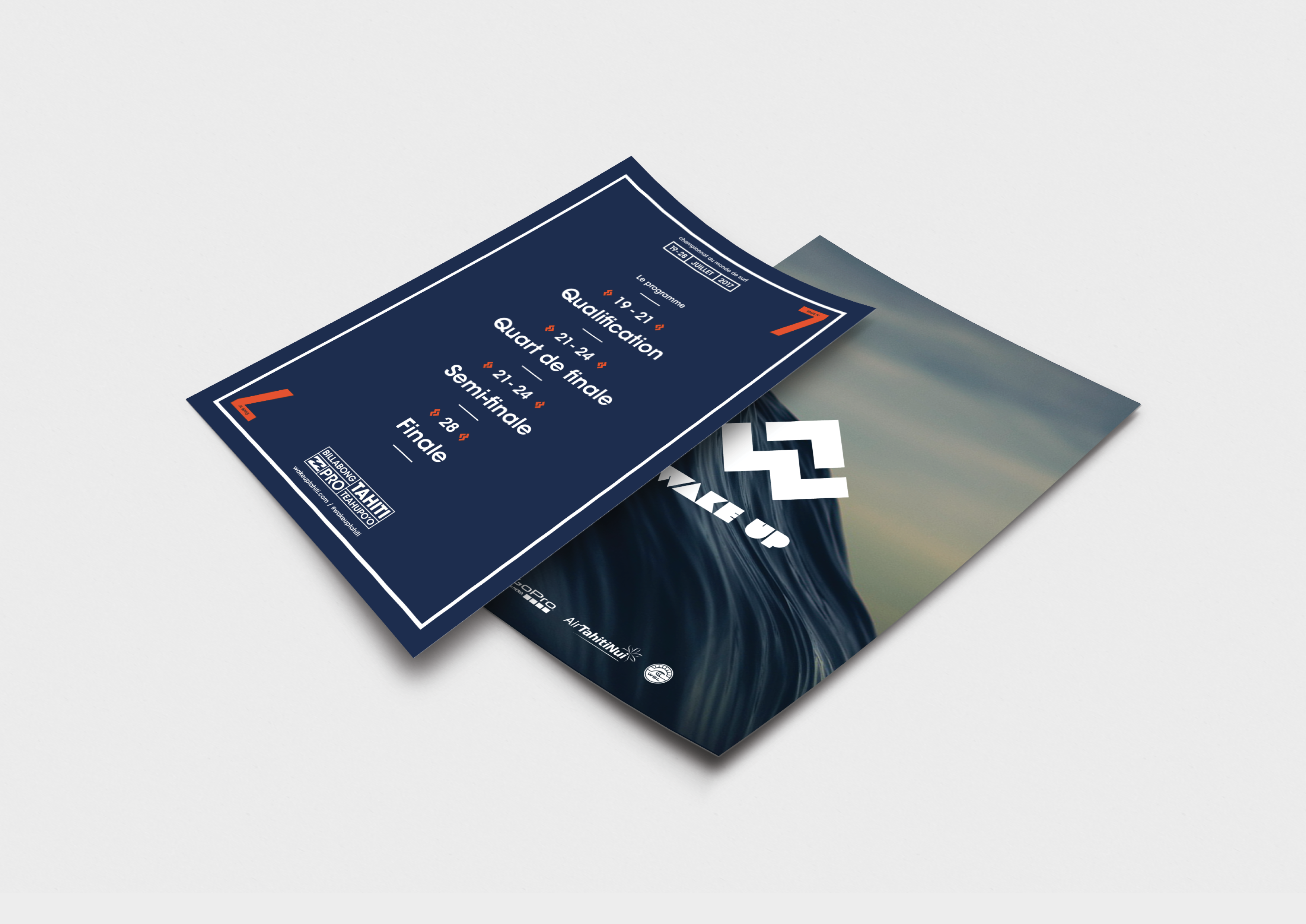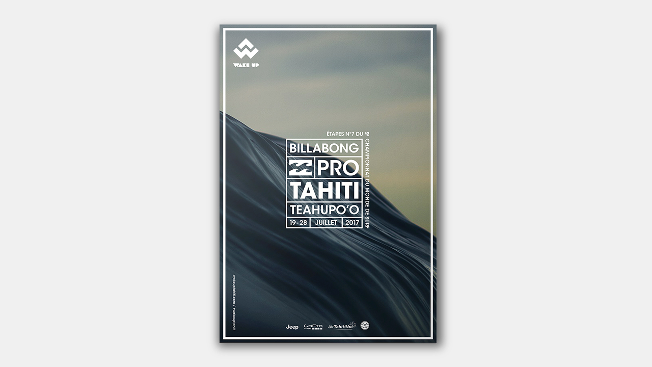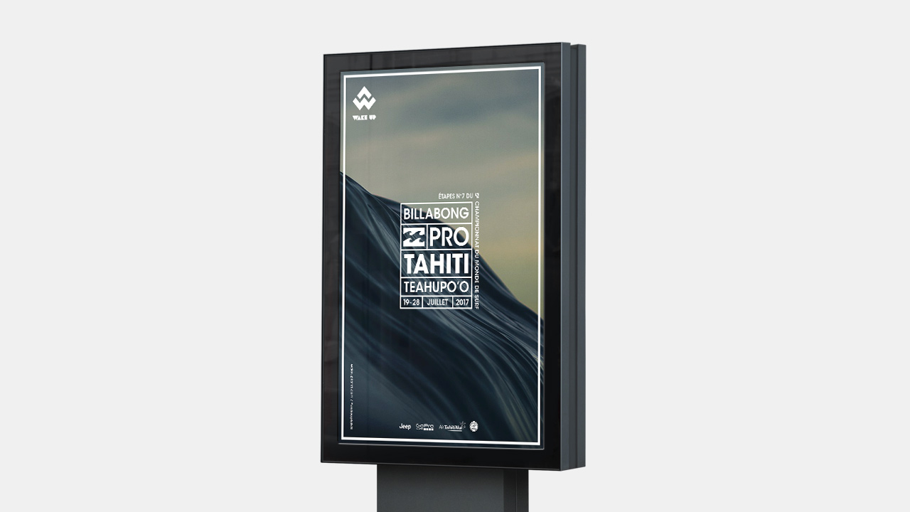 Pour une des étapes à venir du championnat du monde de surf, se déroulant à Tahiti. Il a fallu réaliser une campagne autour de cette dernière pour la promouvoir, tout en réfléchissant à un message écologique.
